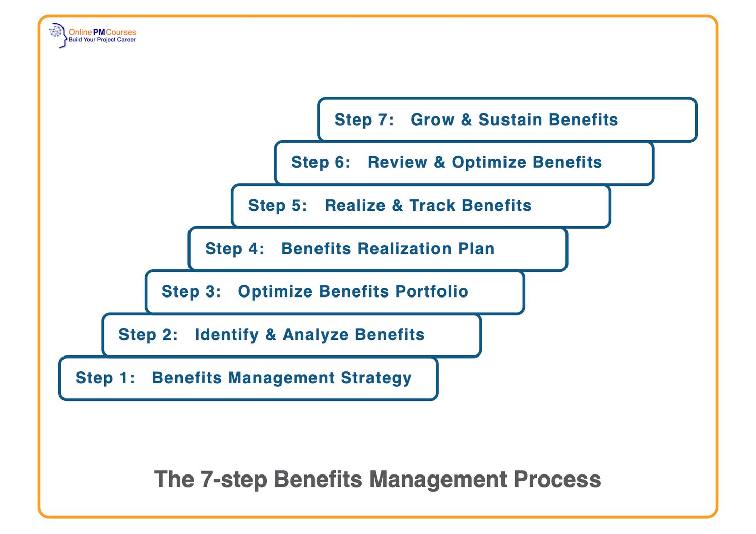 The course is structured around a non-proprietory 7-step Benefits Management process. So, you are free to adopt or adapt our process, with no fear of the copyright police coming after you.